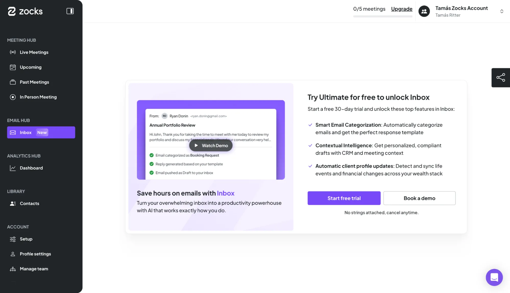 As each subscription tier expands with new functionality, we’re giving every customer the chance to explore upcoming features. For example, Professional customers can launch an Ultimate trial (while continuing to pay only for Pro) and experience Zocks Email. Likewise, Essentials customers can start a Professional trial to explore the full feature set including Analytics Hub and Client Profiles.