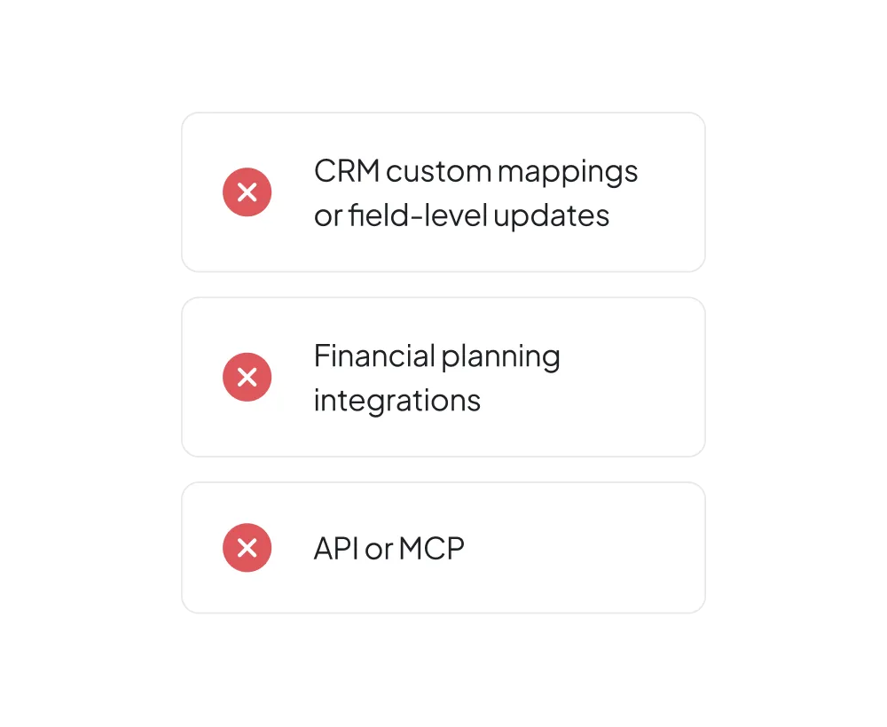 If your firm works across multiple custodians and systems, Zocks gives you broader automation, stronger connectivity, and more ways to turn client conversations into action.