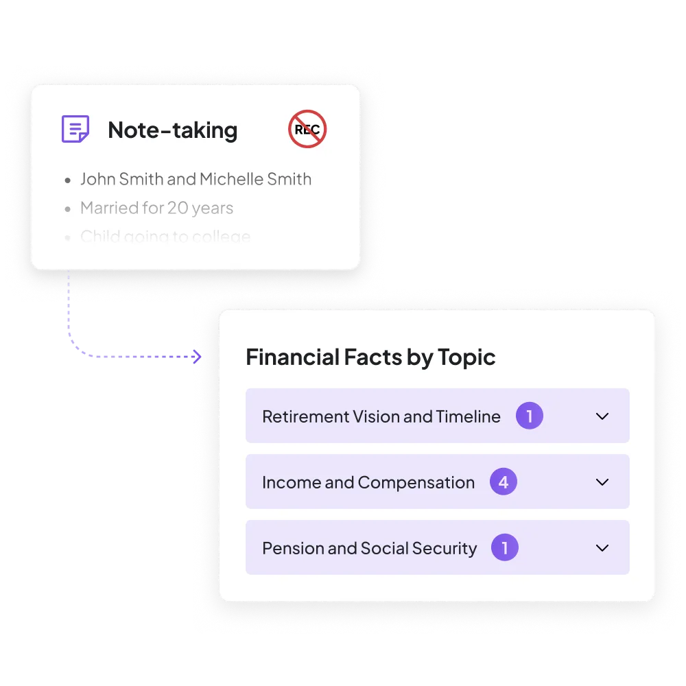 After the meeting, Zocks organizes portfolio discussions and client questions so advisors can quickly review what was discussed and follow up as needed.